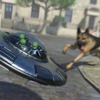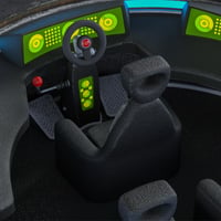 With numerous texture options and lighting the flying saucer certainly looks the part. It seats 3 aliens in comfort, with the driver having control of a moveable steering wheel, gear shift, and floor pedals.