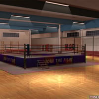The center piece is a detailed boxing ring. Its top ropes offer in/out and up/down morphs for interaction with figures. The banners at the sides can easily be removed if you want to go for a more bare look. The ring has it`s own preload and can be used independently from the room.