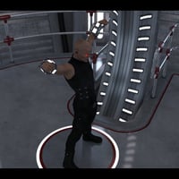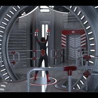 The shackles are wearable Props for Genesis 3 Male, Genesis 3 Female, Genesis 8 Male and Genesis 8 Female. Several morphs allow you to adjust them to pretty much any figure shape.The surrounding room comes in two versions, one has a platform for the Hero to stand on, the other one has a bridge leading to the Ring Machine. Its walls are split into five sections, which you can hide if you need more space for your camera.