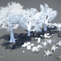 This Magical forest scene has 3 different trees, grass, shrubs, stones and ivy props. In the middle of the scene you can see the magical ancient tree growing on top of a crystal magical fountain which enchants the whole forest. All Materials are optimized for the Iray render engine.