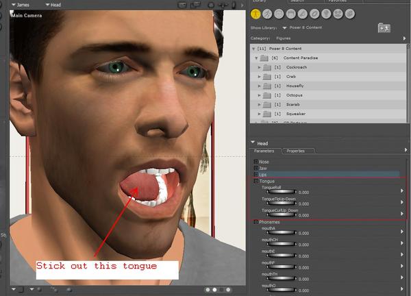 I need a character in Poser 8 stick your tongue out of your mouth.