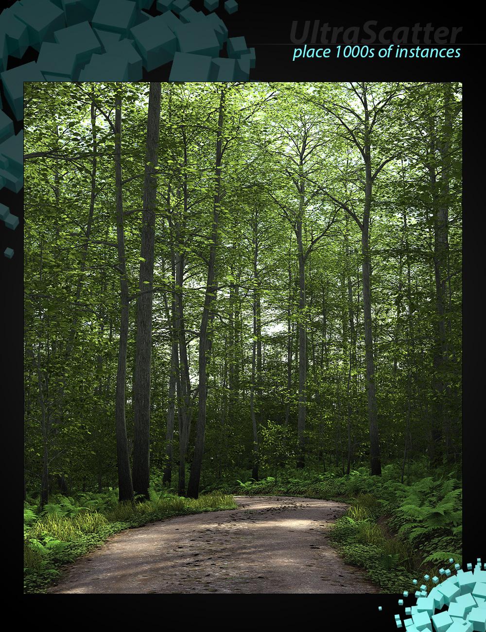 UltraScatter has a large number of options for automatically setting the distribution, scale and rotation of the instances. Perfect for placing trees and plants in a landscape or populating a street with figures.