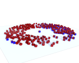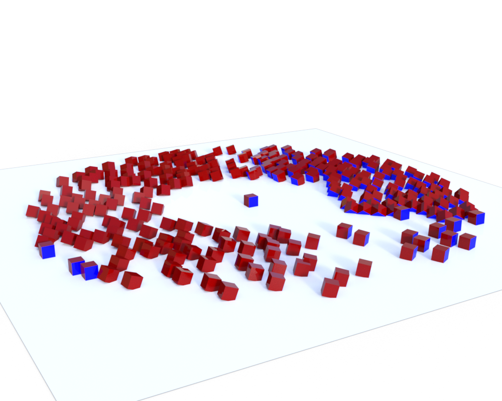 the cube her has one bles side I sue to check the rotation thing. I used the sma map for rotation and distribution, in green ( see below) which should rotate only the y achis but the roll some other way as well and sink into the plane, so where do I go wrong. was imagining with that scne there would be a tunr around with that