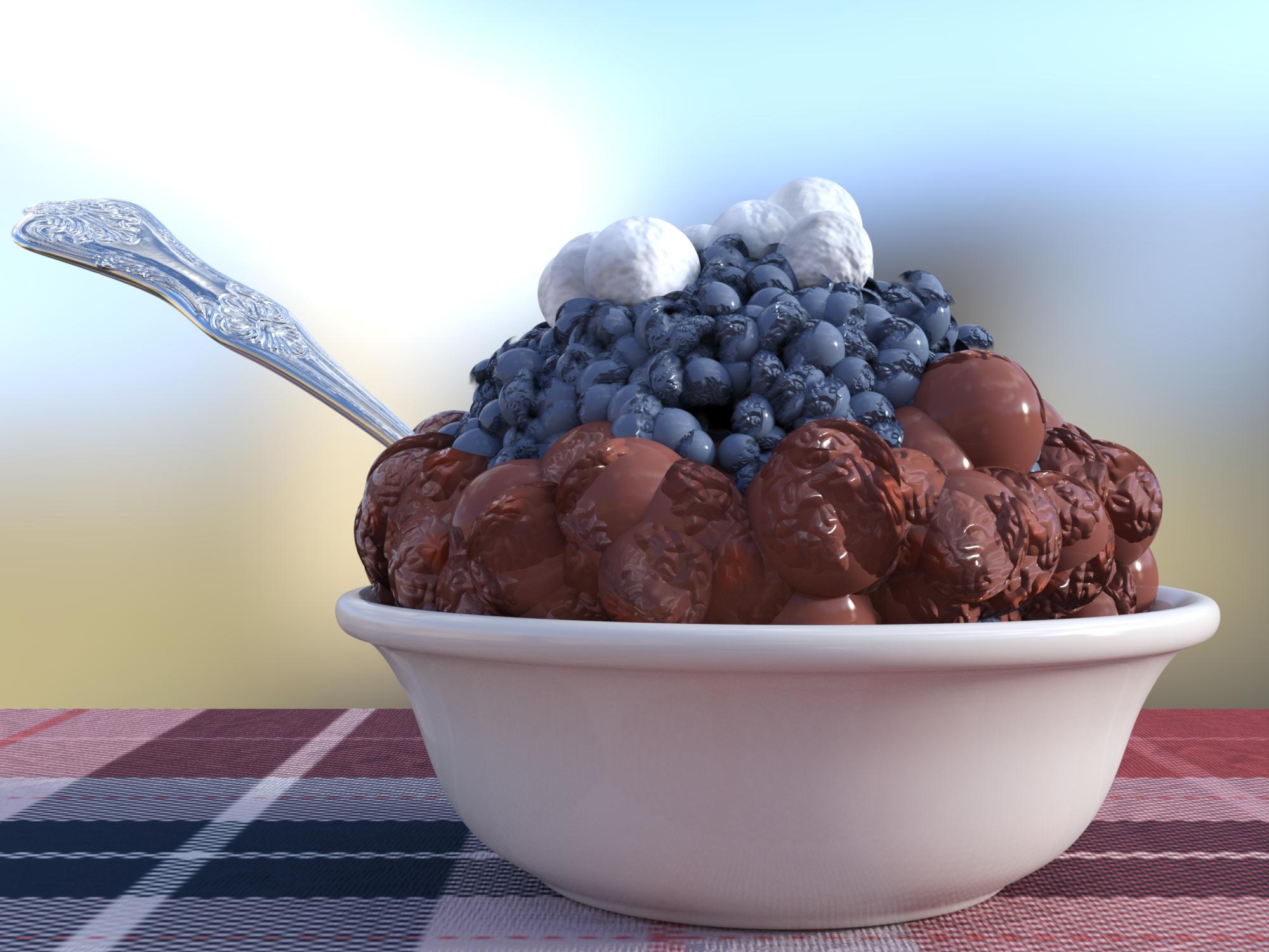 Will,  look at this! I used your WTP shaders. It makes me drool - blueberries, chocolate fudge ripple ice cream, and whipped cream. laugh