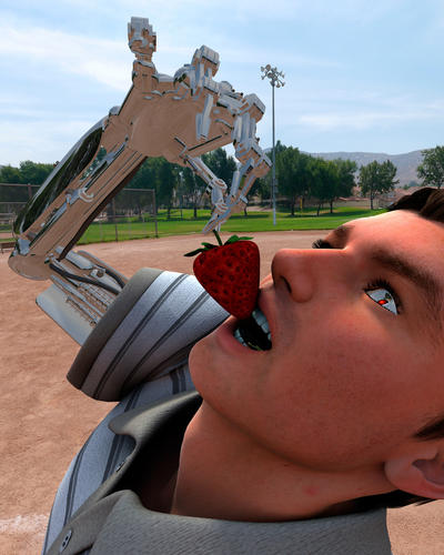 Think of what I just said, I was thinking of an Arnie-Terminator render with the strawberry...