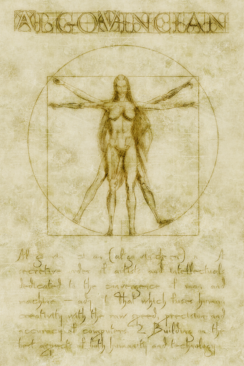 I have often admired your avatar and it's nod to the great Da Vinci. It's cool too see it so large. I hadn't noticed the skeletal/robotic pieces before. Reading the description is great too - seams to be exactly what you're aiming for with your art program. :)