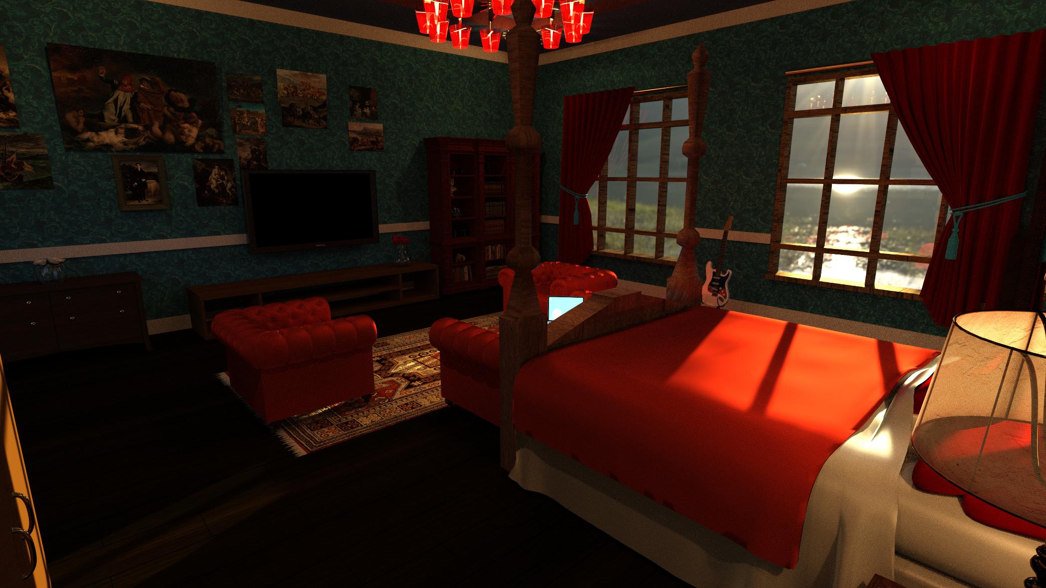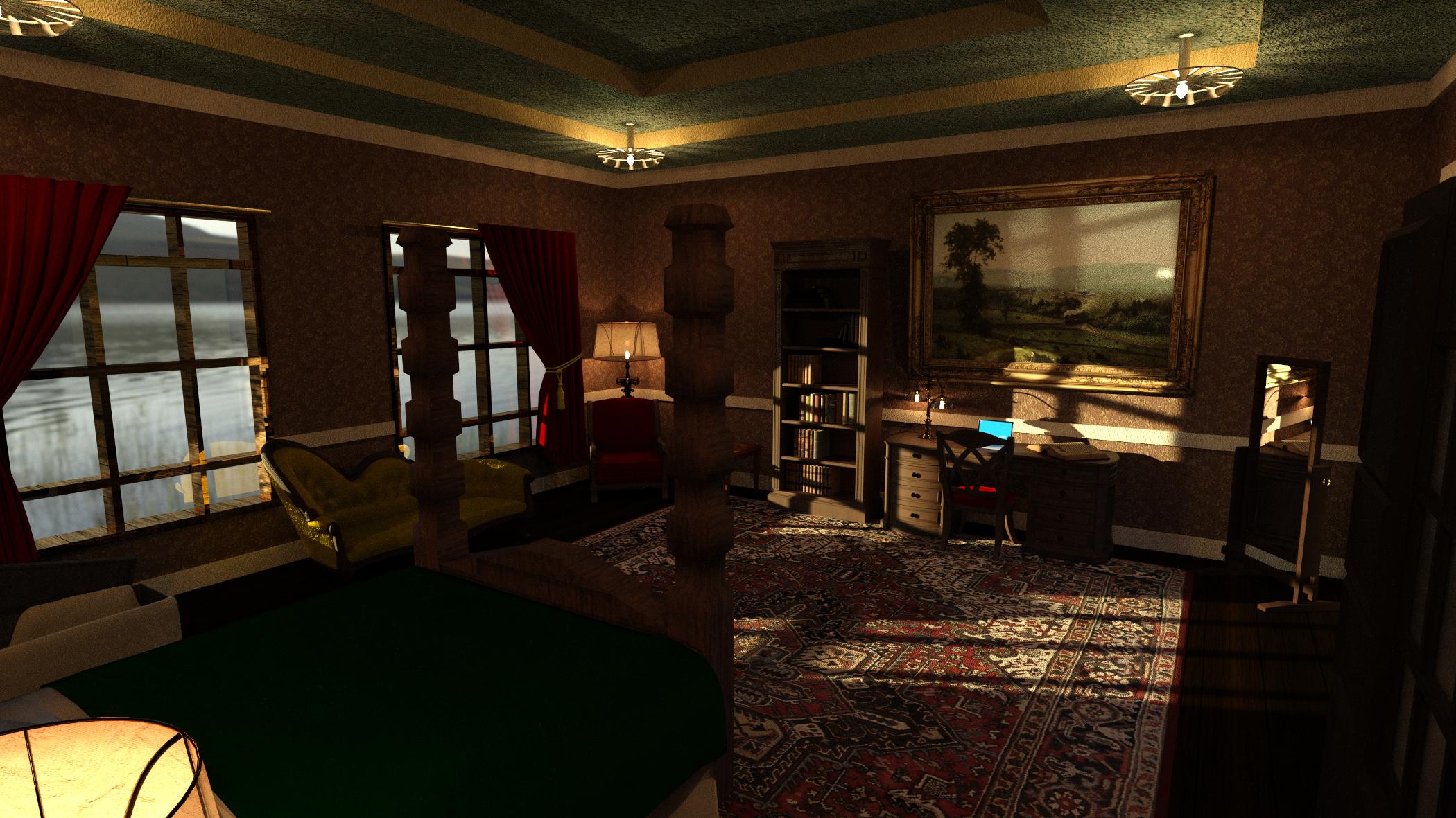 And a bit of fanart, sort of. I really enjoyed the Vampire Chronicles series by Anne Rice, so I decided to take a stab at making Louis' and Lestat's bedrooms, or at least my versions of them. The rooms, beds and ceiling lights I made in Blender and then accesorized with various other props in my DAZ collection.