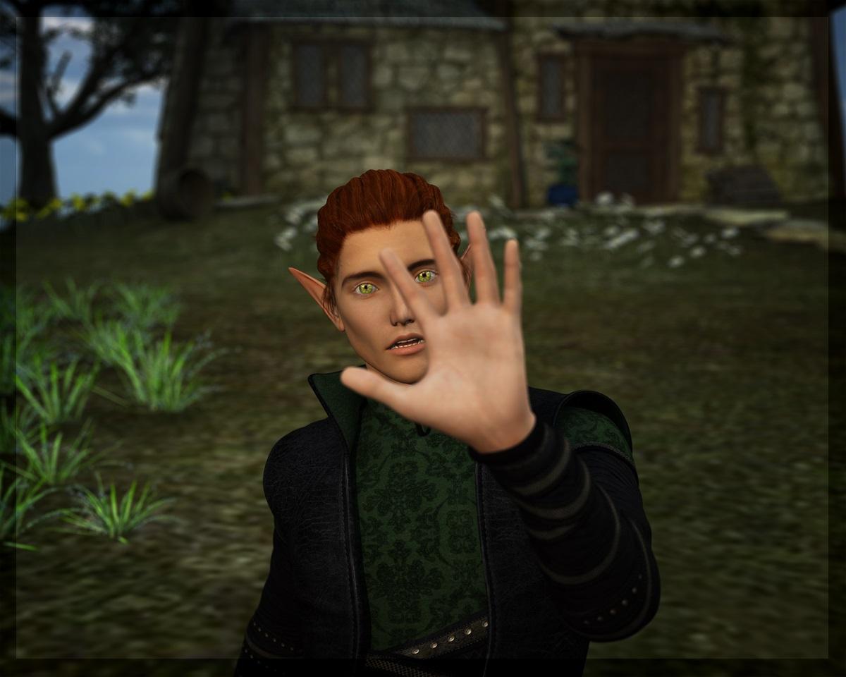 Then there's a few who often demand my attention and are happy to pose for pretty much everything. One of them is Calion, an elf and bard/rockstar who appears in both fantasy settings and more modern scenes, because of the story I am co-writing with my friend. Dialled with various morphs, using Darc's skin, I believe: