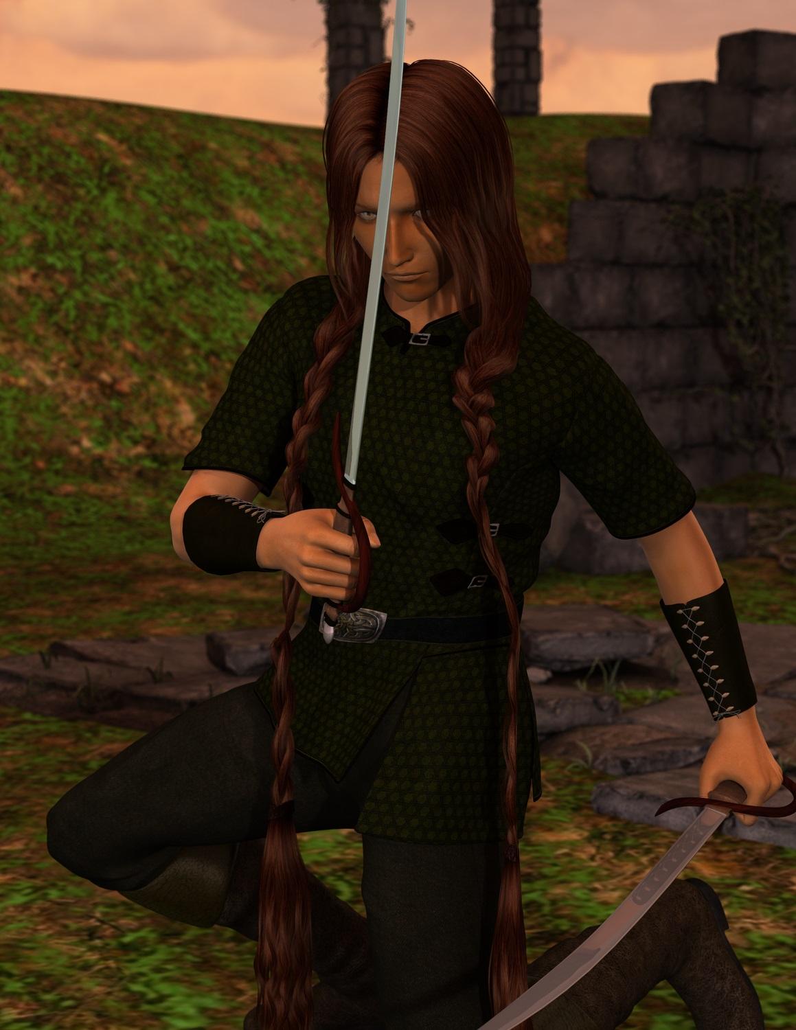 It would probably make most sense to add the other character that insists on having his picture taken whenever I open Daz to test something (the rogue named Dimi), but I won't because my beloved Moody Ranger, Jerutha, deserves a spot here. True, most pictures with him end up as exercizes in brows and greens, but that's because he's a stealthy one. He has a special place, both story-wise and as a 3D character. My first heavily adapted skin (and I had hardly any idea what I was doing - it shows), custom made eyes and an eternal struggle to find a hair model that suits his original description. I should updat him to G2M (or G3M, but my ancient computer needs an upgrade before I upgrade DS beyond 4.6), but.. I just can't. Even though there's a lot wrong with his model, I do love him (even in this very old rather rough render):