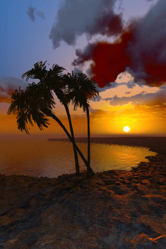 Fantastic render, David...but the rocks look a little too shiny...and you left out the seagulls...there's always seagulls around...waiting to ruin your day (usually by taking a dump on your head as you're about snap the pic of the awesome sunset...)