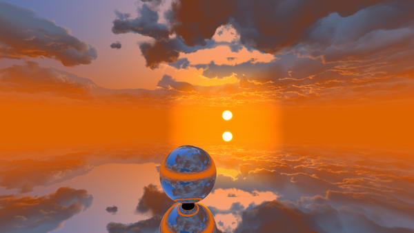 to conclude then... Bryce 10 minute skylab project - sunset effect, with clouds and put in a scene - by David Brinnen