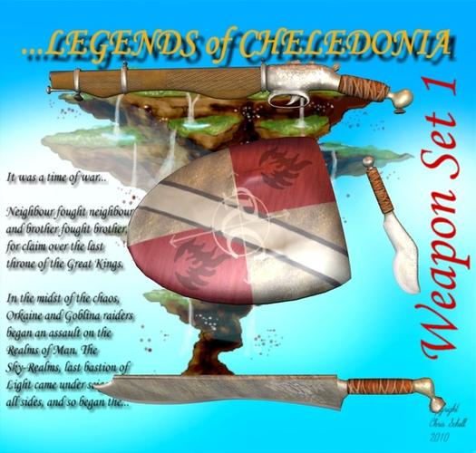 I've released a new freebie set of 4 Smart-propped Cheledonian Weapons to go with my Anime Girl Kristin... Find them in the "Armouries" area of my site at www.schells.ca