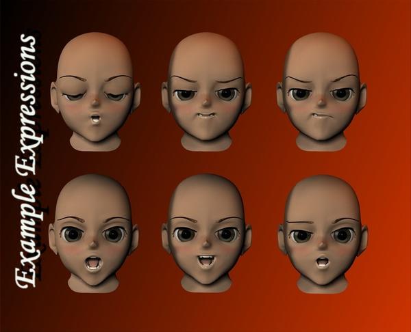 Plus a Default expression pose to return her face to it's default loaded expression! See below for some samples...