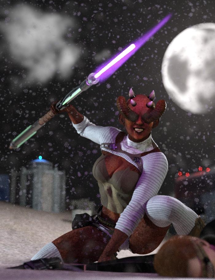 Thanks Dracorn! its funny you should say that about dusk or dawn I have the next version rendering more toward dusk.  also added the fire and linear point light to that.  Worked a bit on adjusting the pose.  I started out using 3Delight but tend toward using Iray for a lot of stuff.  I do like 3Delight for some things, and have no intention of giving it up entirely lol. I haven't done much in 3Delight lately and I don't want those skills to get too rusty. What little skills I have that is lol!