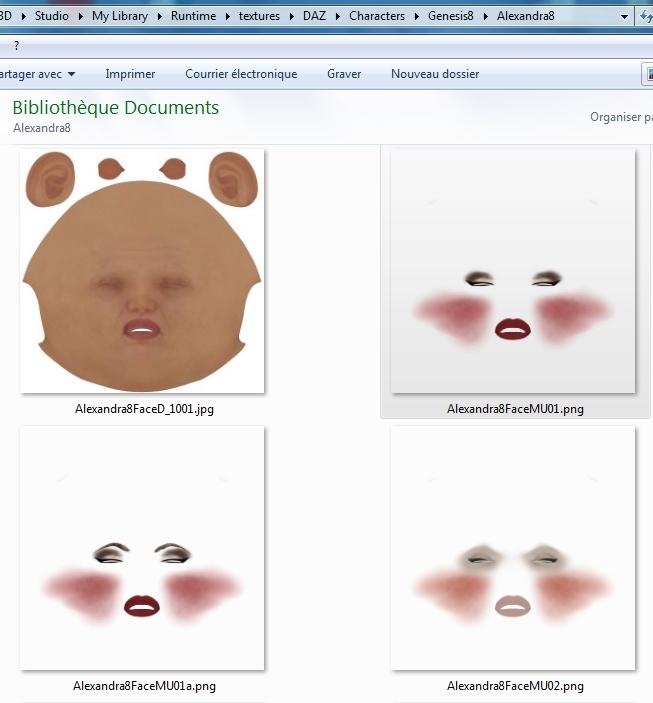 In Surfaces go to face then diffuse overlay weight and diffuse overlay color. Click on the thumbnail of the map then on browse (it will take you to Alexandra textures folder) and load the make up file without eyebrows. The texture map with eyebrows are called for example Alexandra8FaceMU01a and the no eyebrow Alexandra8FaceMU01. That's why brow remover is having problems.