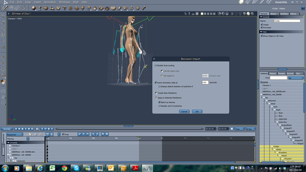 Hence that I import original collada and bvh into carrara 8. I also could see animation time line in carrara 8 after I import bvh but the animation still not work.