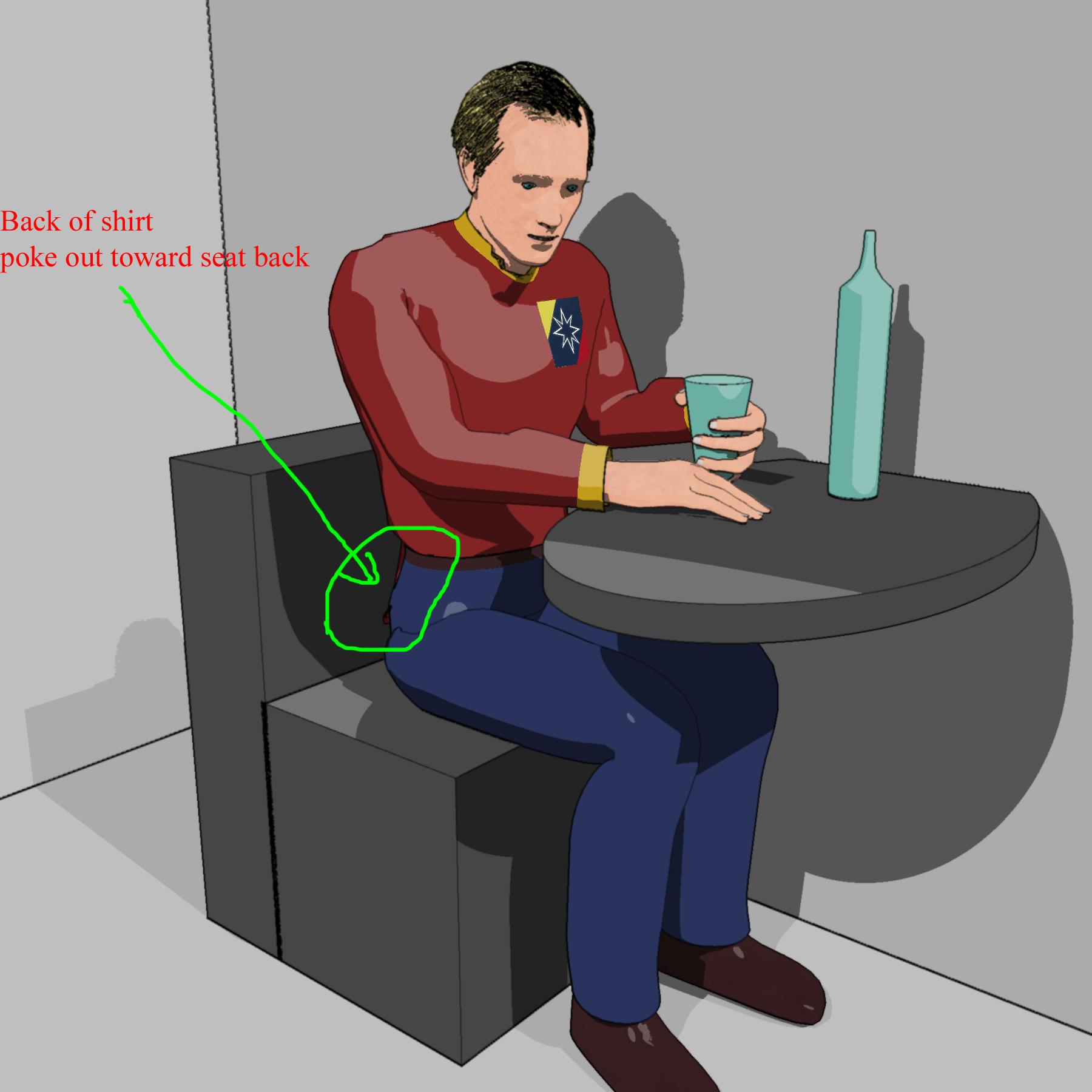 Of all the gin joints in all the galaxy, Moxie had to walk into his. Hopefully, you can see the correction at the back of his pants/shirt in the sitting position in the two pics. Have to clean up more of the weightmap around the top of the thigh, but very happy with the tuck-in morph.