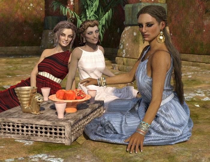 Well, chevybabe, I've bought Draupadi, downloaded her and have been playing with her and she truly is beautiful. Thank you so much! Here is a quick render of her (on right) with Vincenzina and Amisi (only 20% done, which explains the slight fuzziness); she came out looking more imperious than I intended... ;-)