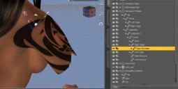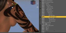 When I make the character's shoulder invisible in clicking on the Eye icon on the Scene tab, the shoulder (/arm) disappear and the tattoo disappears with it at the same time. So I assume there is an element/object called tattoo that should be listed in the SCENE tab but I find none.