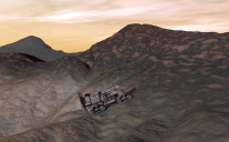 The terrain has a height cutout at the peaks, then a mostly reversed version as a iray decal, but the peak decal has cutout pattern (through which light from below bleeds up).