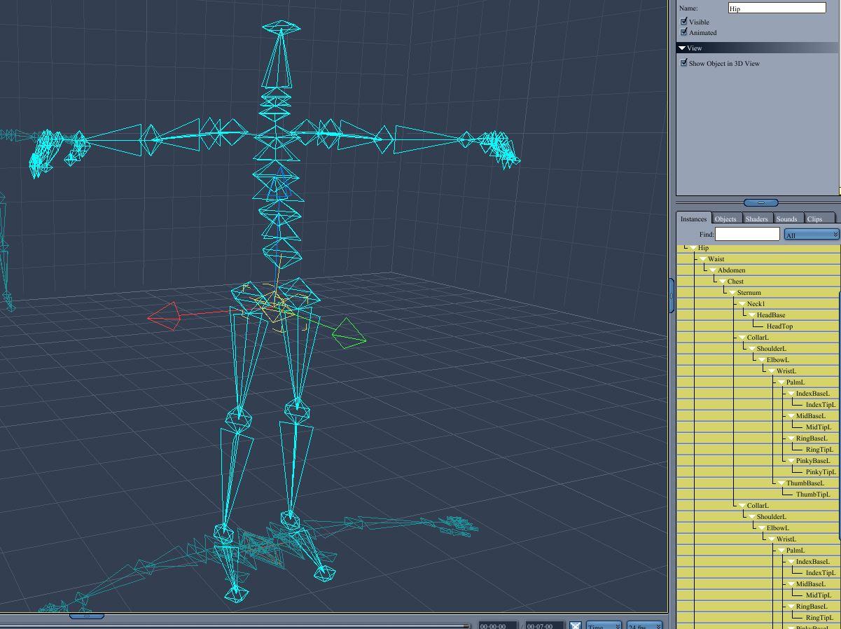 Note - a model does not have to be a vertex model or a single polymesh to be custom rigged in Carrara.  For example, you can load facet meshes from the object browser, add bones, attach the skeleton and pose.  For example, the Chester Harlequin character is a combination of facet mesh objects from the browser that I added a skeleton to.  Same for the ape wearing a shirt riding the horse.