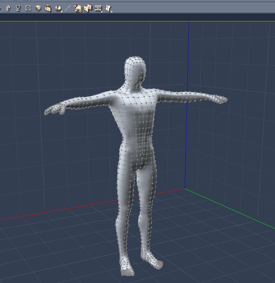 I should also say that I have some generic low poly humanoid body meshes saved.  I did not have to use that yucky ChickenAlien mesh.  I could have started with the following saved low poly humanoid and matching low poly skeleton.  I am going to replace this with a better mesh (better edge flow) as per some links offered by Desertdude.  But this was my old starter mesh and skeleton. See that the bones are named?  Fingers have multiple joints?  The faceless hero!