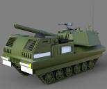 The self-propelled howitzer is a toy rocket launcher that I picked up here and heavily modified with my own tracks and a Pot O' Greebles for accessories (the white parts are where unit numbers etc. will go - I had to use the geometry editor to separate them into their own surfaces for texturing) and the turret is from Tank Thor, shortened along the "Z" axis to make it fit the chassis and stubbify the barrel. Weirdly enough, I had to use the geometry editor to get rid of the rest of the tank! http://www.daz3d.com/sr31-mobile-missile-launcher http://www.daz3d.com/tank-thor