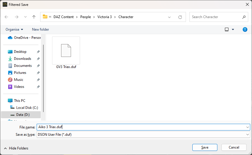 Remember if you make a clone obj file of any of the characters for G8F/G3F etc, then keep the obj file as it can be used as a clone file for each & every other triax character you choose to create.