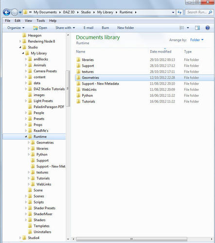 The DS Runtime folder should normally be inside the ( My Documents / Daz3D / Studio / My Library ) folder.