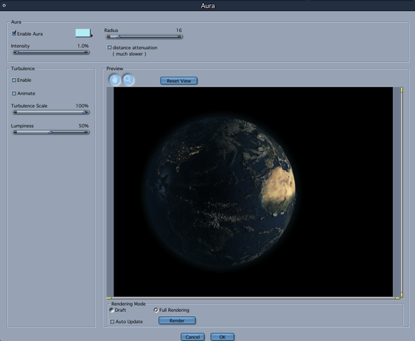 Also, the final render showed the planet rotating but the aura also rotated away leaving the final few seconds with no glow. :(