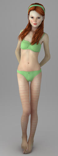 Okay, this is what I'm getting with a shading rate of 0.01 for UE. The banding is only in the arms, although there's some in her legs too, so I'm going to double check if I have anything odd going on with my skin materials on those mat zones. Also see that I still have some hair issues but it's pretty minor at this point.
