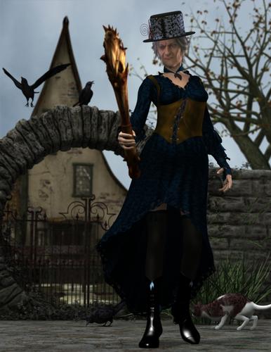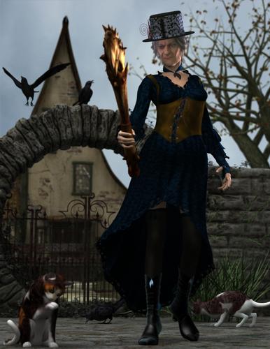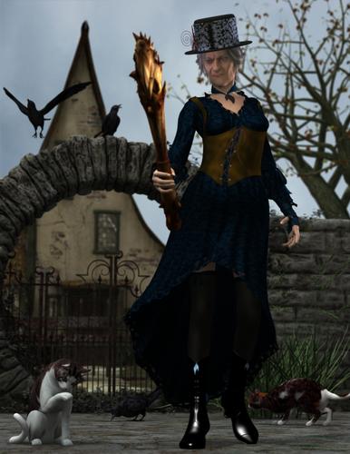 You may notice that Cat #2 has re-appeared...still not sure which way I like it better: one cat or two. The other significant change is the boots: I applied leather and suede shaders (from the Supersuit Fantasy Pack, I think) and I like the result much better than the default materials. :)