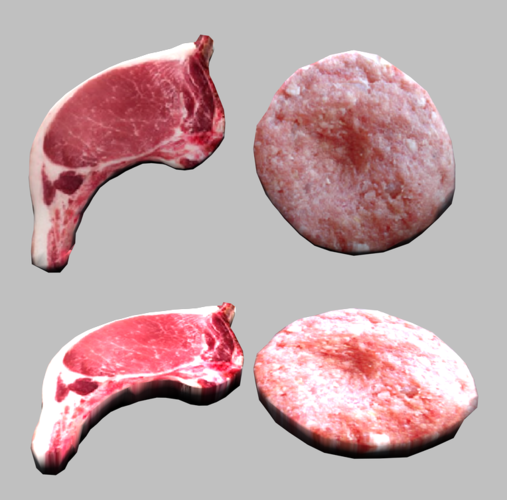 This is a quick render of my Masters of the Pork Chop and 1/4 pound Burger patty. The texture stretching will be fixed before the Items are offered to the Public.