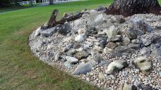 Well, ten + tons later (over 20,000 lb.s in total), all picked, loaded, unloaded and installed with my bare hands, I'm finally done with the preliminary stone work for this small project. Four days total.