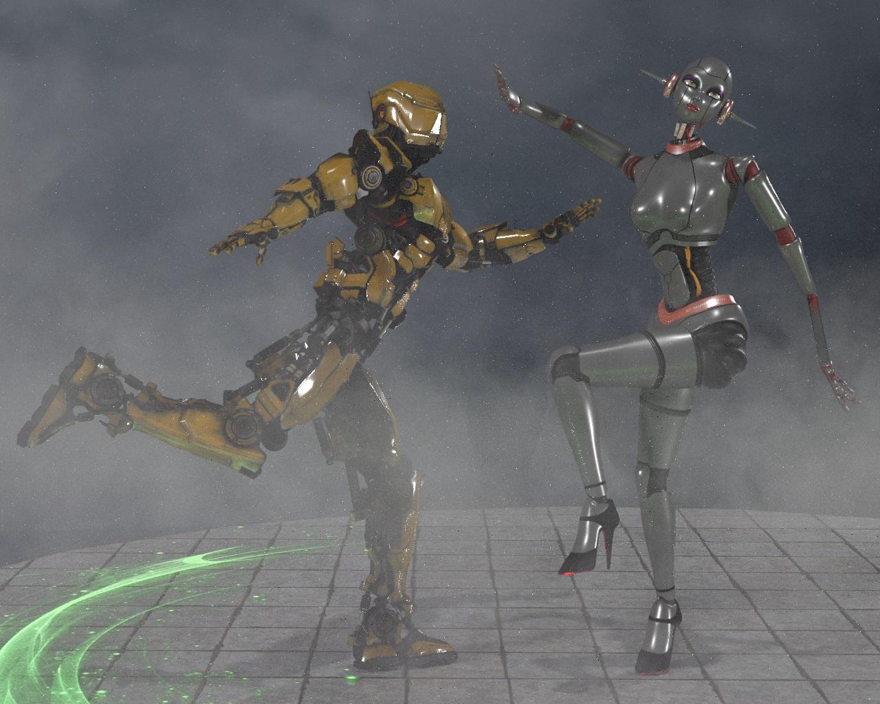 Thanks. Below is another example render. Used shaders on the ground and the parts of the female robot without texture maps.