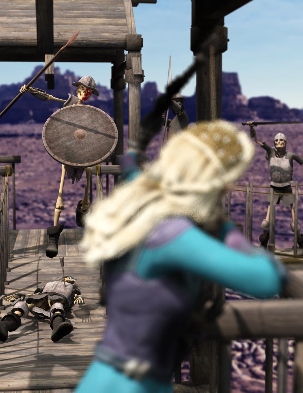 You have done a good job with composition. My eye goes right to the skeleton warrior jumping over his fallen companion.