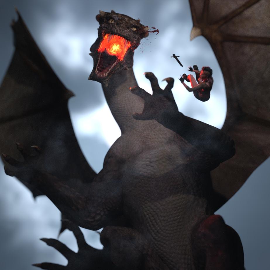 Another one from above, but less finished (though I think the emission map on the dragon comes out here quite well) :