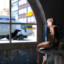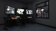 Yeah, the pattern on the window is a legacy of applying the Architectural shader to the building. Easy to fix and while I was at it, I poked at creating a reflection. Unfortunately using the Iray PBR stuff makes it hard (for me anyhow) to get a reflection on the side of the window where it's darker (aka inside the building). I'm seeing if I can grub up the glass the same way I grubbed up Karynna, which, if it works, could be interesting.