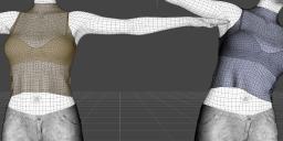 The scenario I am trying to fix is portrayed in the second picture (with the tshirt), where it seems like the bottom of the shirt is somehow 'anchored' in place so that it does not follow along as the Gen3 figure bends to one side. Instead the polygons are stretching/compressing every which way in order to to keep the bottom of the shirt in place. This would be akin to fabric spontaneously polymerizing in order to keep one's body covered no matter what.