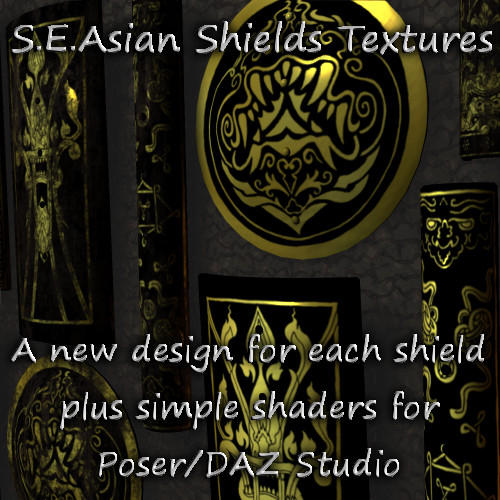 S.E. Asian Shields ('Smart+' Props for Poser and DAZ Studio) [DS Reflection Oddness?]