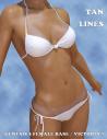 Tan lines is an Addon for wet and tanned skins which is available separately. This is a collection of tan line patterns (from very very small bikinis to monokinis, shorts, tee shirts). The tan lines strength (visibility) can be controlled with a single dial from the surfaces editor tab, or using a dedicated interface. For now the tan lines are provided for Genesis 3 Base female UV sets, and Victoria 7 UV sets. You can try on other Genesis 3 females : depending on the tan line type and the figure you try, it may work pretty well.