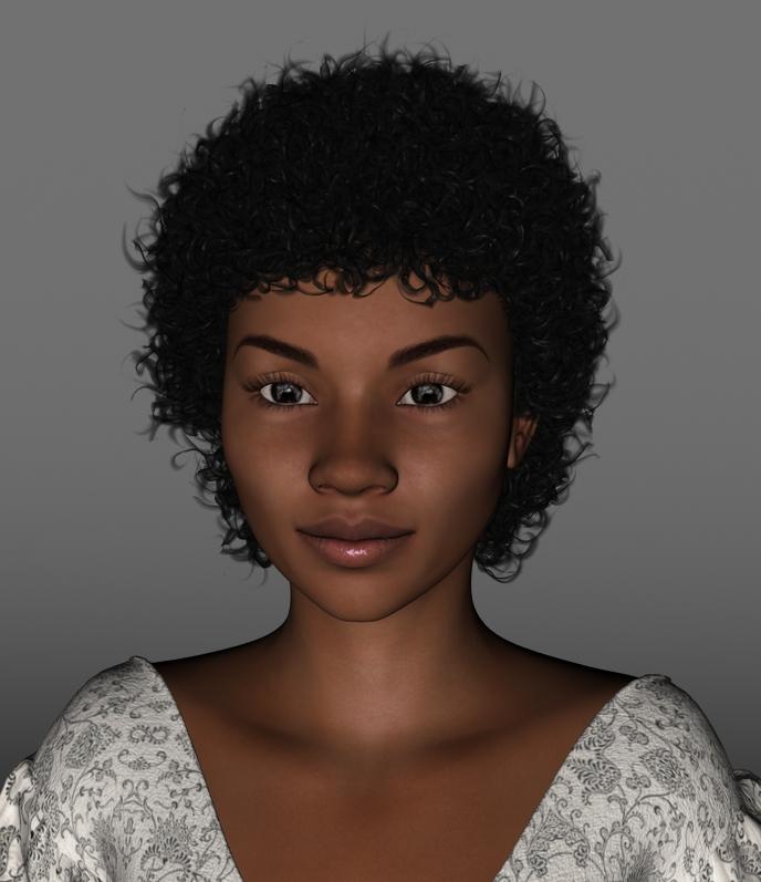 The Iray render turned out gorgeous! I really like that skin texture. Sadly, I think it's probably going to be quite a bit too dark for the character I need. The brows would need quite a bit of work as well. I'm definitely going to have to get that hair - it's really cool and one of the few hair styles I've seen in the Daz shop that would work well for people of color. I saw it with some Kimo renders but you really sold it for me! :)