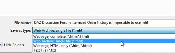 Not completely correct. MHT format saves the whole web page as a single file. Very handy! :) See wikipedia article.