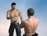 << EDIT >> Added a second render using a Render Studio lighting preset and took their shirts off to better see how the skin looks. Turned up the muscles a tad to see how the skin showed detail. Still AoA SSS on both skins.