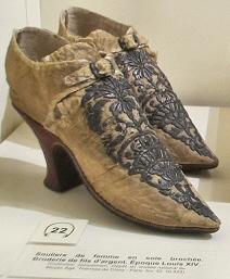 Sometime I have to sort out the 200 or so shoe pictures from the museum at Romans-sur-Isere and then work out which ones I can try to make. It's a fascinating collection with all periods and good international coverage. I bought the book so I should start adding shoe information into the Wiki. A pair of shoes from the court of Louis XIV.
