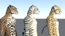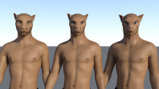 Images 1&2: All 3 are G8.1M with default skin textures, from the neck down - all the same HFS cat-related morphs, and a standing pose.
