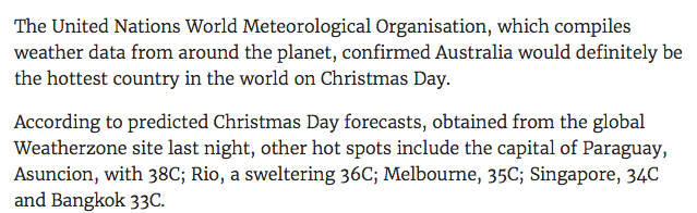 Teh radio iz saying we're the hottest country on teh planet Christmas day