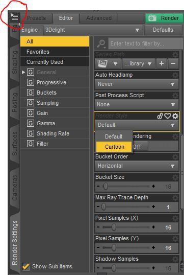 Then the Render Style dropdown appears, with Cartoon as an option. And...that's all I know. smiley Hopefully someone can chime in who has actually tried it out.
