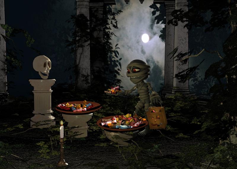All the candy was done from one model which is morphable and I tweaked the surfaces and reflection settings.  It came with Community Candy Bag, which is also free on Daz.  You will need to go to Runtime to get Little Mummy.  All three are free.