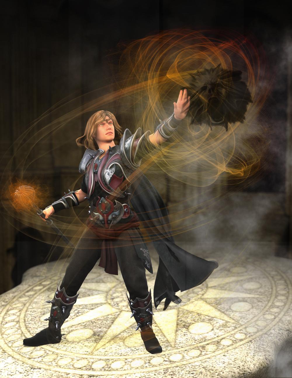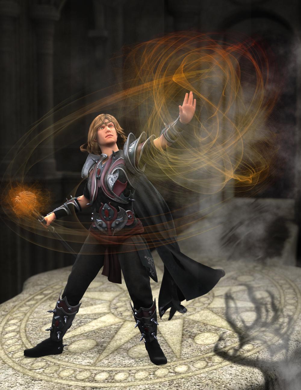 Here is another scene rendered in 3Delight with the Arcane Summoner outfit, Argenou hair, Sorcerer for Genesis Poses, Ron's brushes, UberEnvironment2 light, and portrait lights in Studio Light Pro DS 4.6.